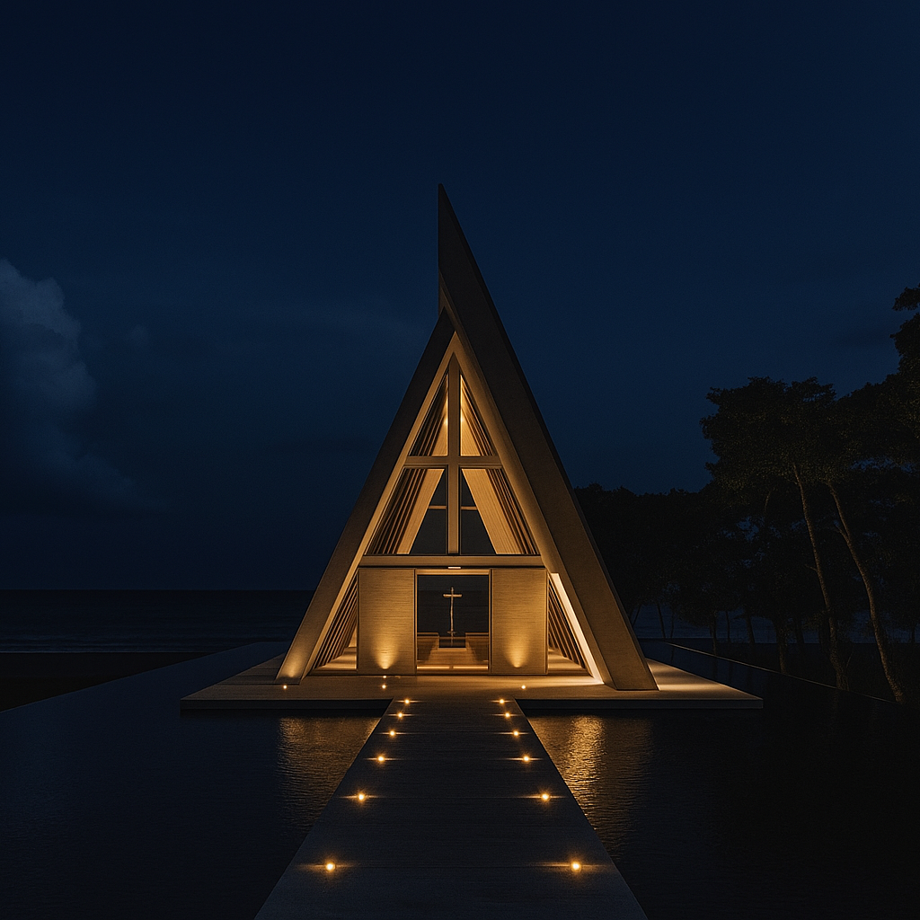 昼とはまったく違う、ロマンティックな表情を見せるナイトチャペル。